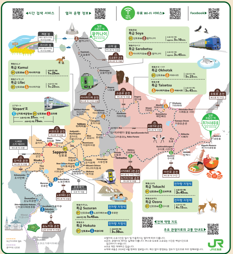📌 삿포로-후라노 지역 JR홋카이도선(홋카이도 신칸센 제외)의 열차를 자유롭게 승하차 가능한 교통패스 ! 📌 신치토세 공항부터 삿포로,오타루,비에이,후라노 까지 다양한 지역을 연속 4일간 자유롭게 이용 가능 ! ✅ 특급/쾌속, 보통열차 자유석 무제한 이용으로 알뜰한 일본여행을 즐겨보세요. ✅ 비에이,후라노를 여행하고 싶은 삿포로 여행자에게 강력 추천 ! ✅ 러브레터 촬영지 오타루, 사계절 눈을 사로잡는 비에이/후라노, 일본 가장 북쪽 동물원인 아사히가와 아사히야마 동물원 등 북해도를 마음 껏 즐길 수 있는 가장 빠르고 편리한 패스 !