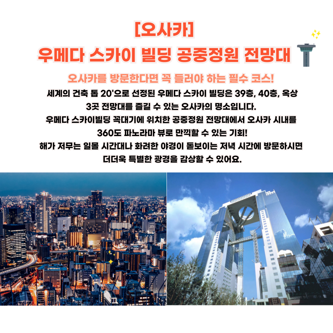 📌 세계의 건축 톱 20'으로 선정된 우메다 스카이 빌딩은 39층, 40층, 옥상, 3곳 전망대를 즐길 수 있는 오사카의 명소