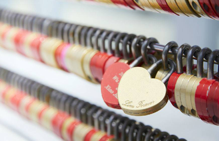 ✅ 옥상 한편에 있는 5색 와이어로 된 펜스에 세계에서 하나뿐인 자물쇠 "하트 락" 을 달아 소원을 빌어보세요.