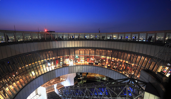 ✅ 우메다 스카이빌딩 꼭대기에 위치한 공중정원 전망대에서 오사카 시내를 360도 파노라마 뷰로 즐겨보세요.