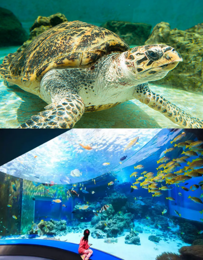 📌 세계 2위 규모의 거대 아쿠아리움으로 만타 가오리, 고래 상어 등 특별한 바다 생물을 만날 수 있어요 !