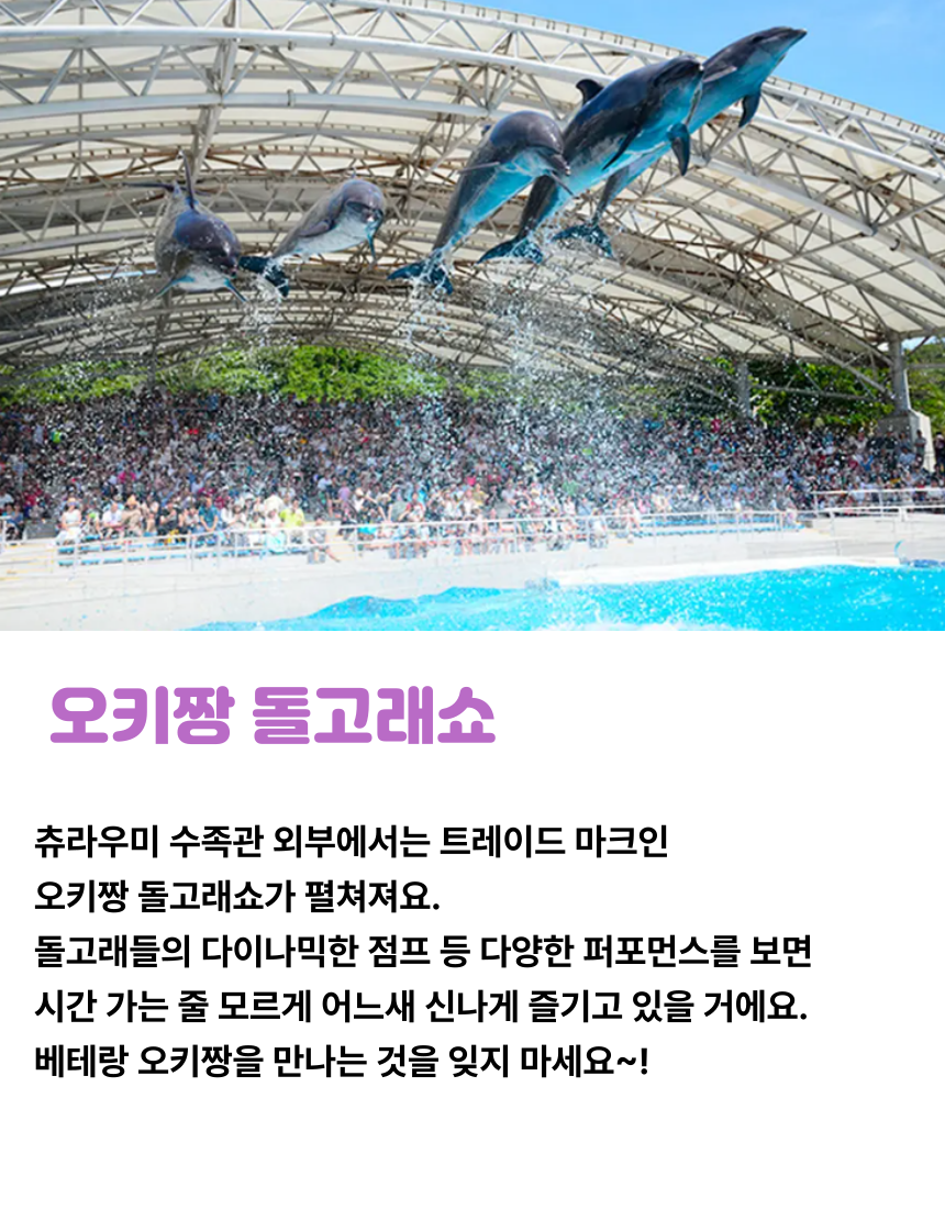 ✅ 츄라우미 수족관 오키짱 극장에서는 돌고래 공연이 펼쳐져요!