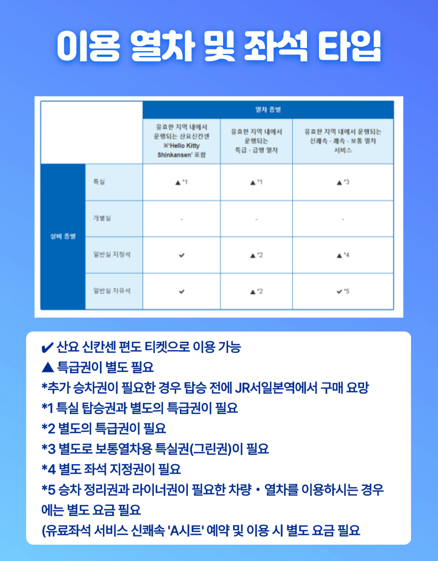유효한 지역 내에서 운행되는 특급, 급행 열차 이용 시 별도의 특급권이 필요합니다.