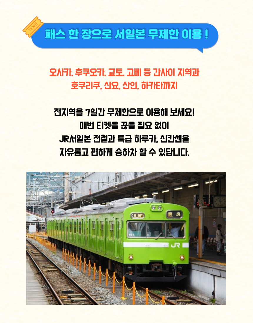 이동시 추가 승차권이 필요로 되는 경우, 탑승전 JR 서일본역에서 구매해주시기 바랍니다.