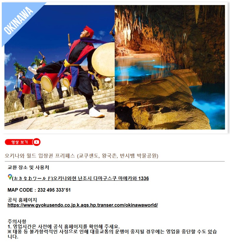 ✅ 오키나와의 다양한 체험시설과 관광지를 편하게 즐겨볼 수 있는 "오키나와 조이패스"