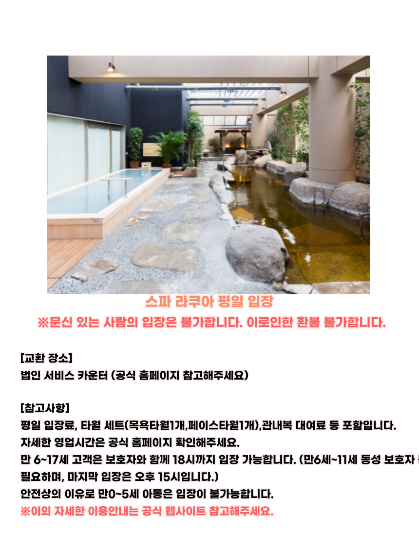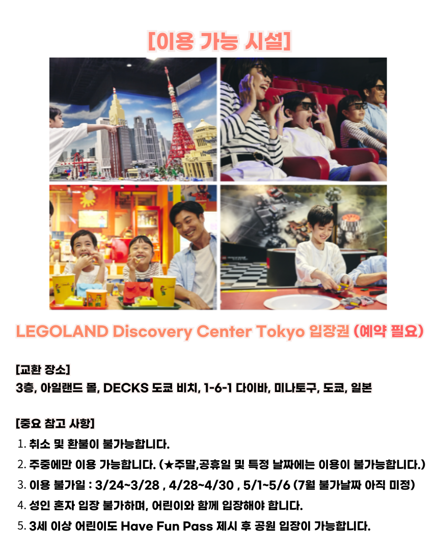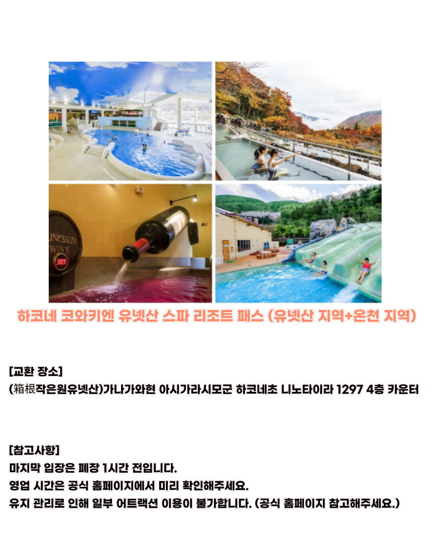 자세한 영업시간, 휴관일, 유효기간에 대한 정보는 공식 사이트와 각 시설의 홈페이지에서 방문 전 다음 링크를 참고해 주세요.