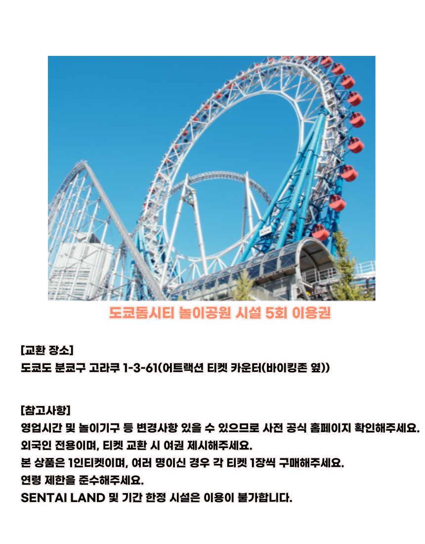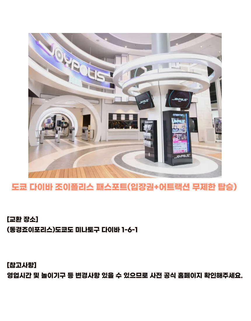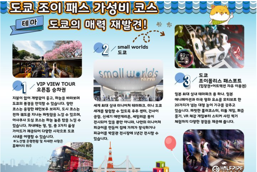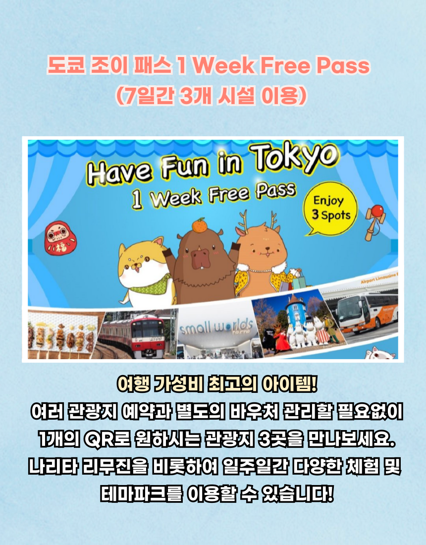 도쿄 조이패스 시설 3개 선택 1주일 무료 패스