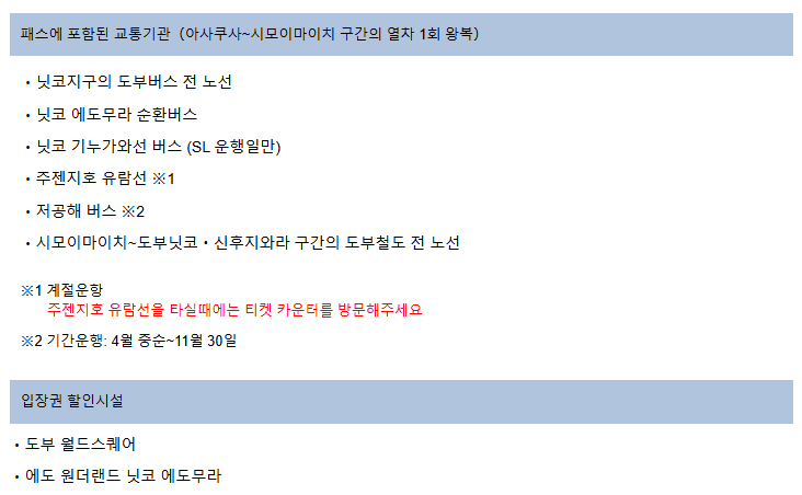 📌 닛코 패스 올 에어리어는 닛코, 기누가와, 주젠지호의 모든 곳을 방문하고 싶은 관광객에게 추천 !