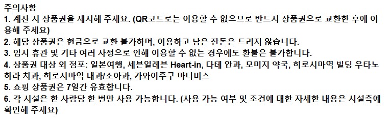 이용일 부터 7일간 유효 하지만, 구매일로 부터 270일 이후 이용 불가하니 주의 바랍니다.