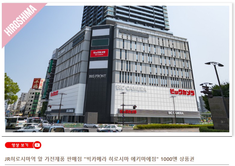 JR히로시마역 앞 가전제품 판매점 "빅카메라 히로시마 에키마에점" 1000엔 상품권