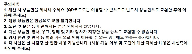 동일 시설은 1회만 이용 가능하며, 동일 시설 재입장은 불가합니다.