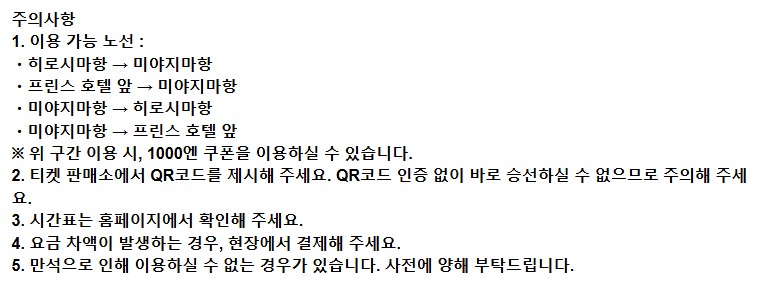 히로시마항-미야지마항 고속선 티켓 1000엔 할인 쿠폰