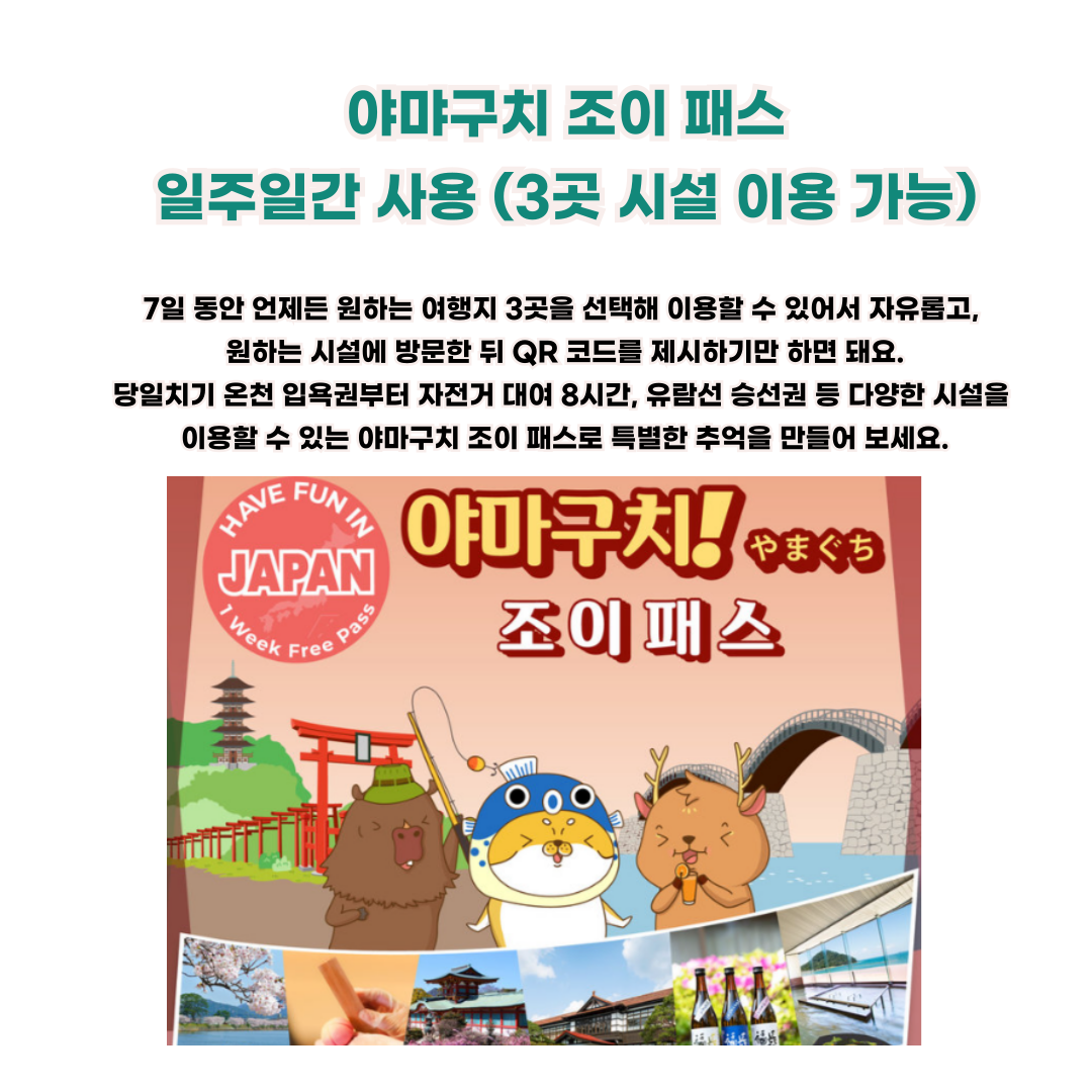 ✅ 야마구치 다양한 시설과 관광지를 알뜰하게 이용 가능한 "조이패스"