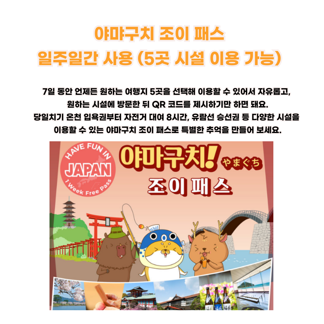 ✅ 야마구치 다양한 시설과 관광지를 알뜰하게 이용 가능한 "조이패스"