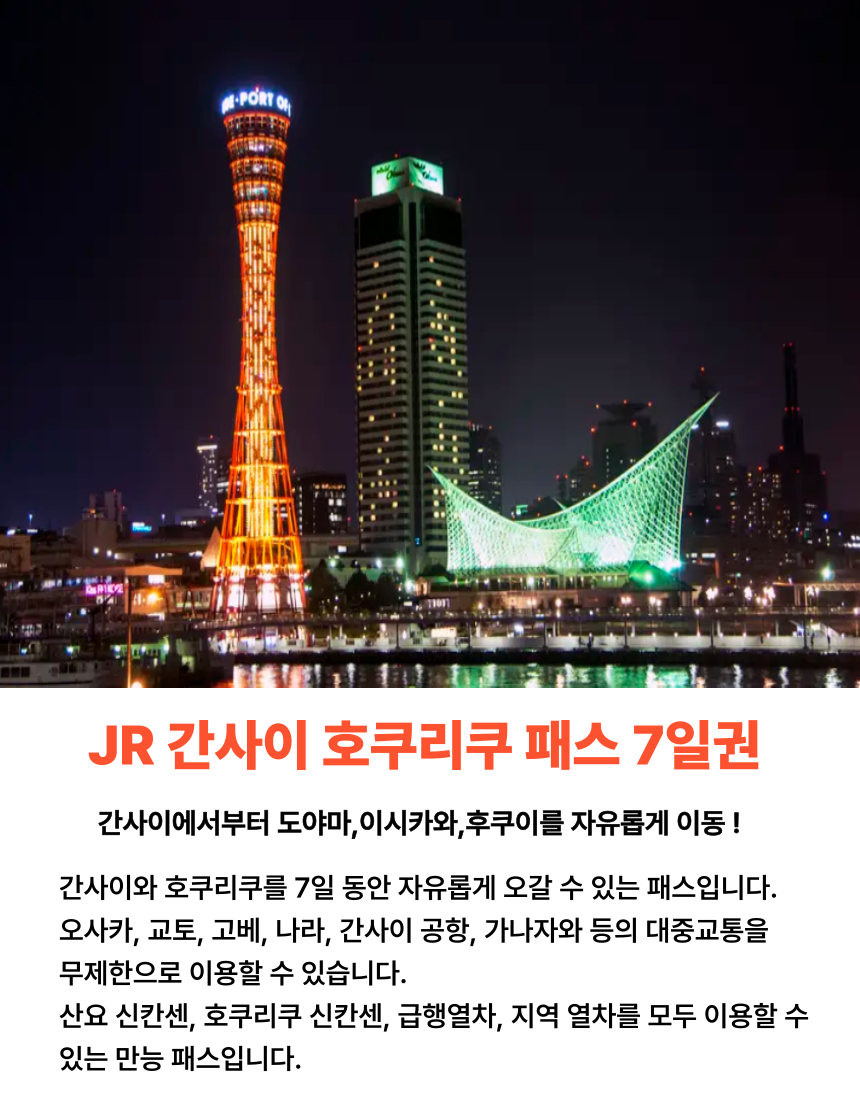 📌 JR 간사이 호쿠리쿠 패스 한 장이면 히메지 성, 고베 타워, 구라시키까지 문제 없이 모두 여행 할 수 있어요.