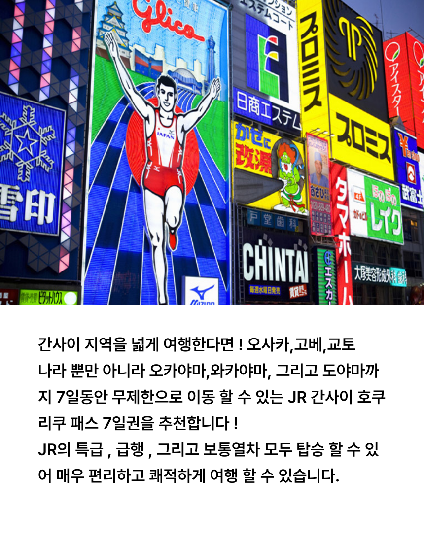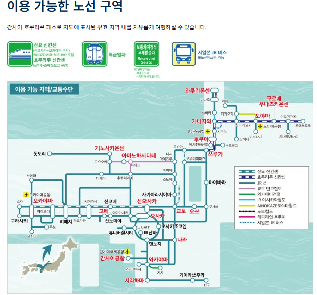 ✅ 오사카, 고베, 교토, 나라뿐만 아니라 오카야마, 와카야마 그리고 도야마까지 이동할 수 있는 패스에요.