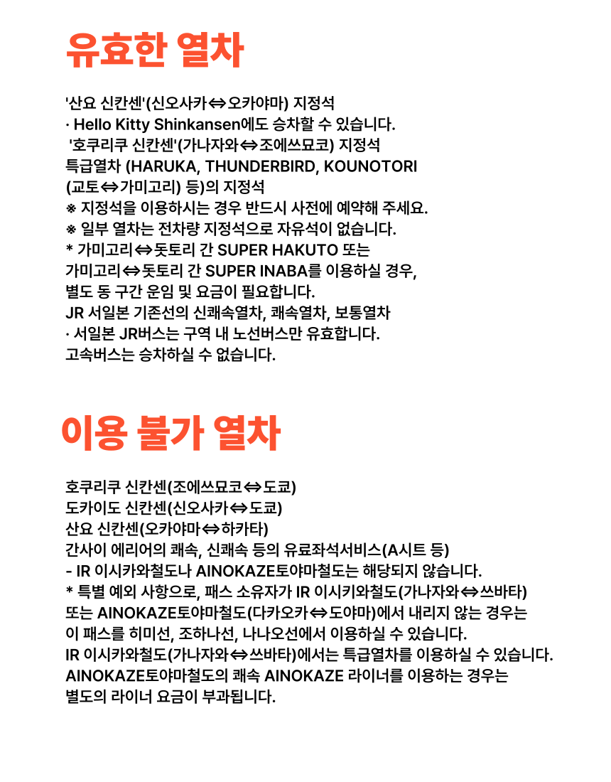 ✅ JR의 특급, 급행, 쾌속 그리고 보통 열차 모두 탑승할 수 있어 매우 편리해요.