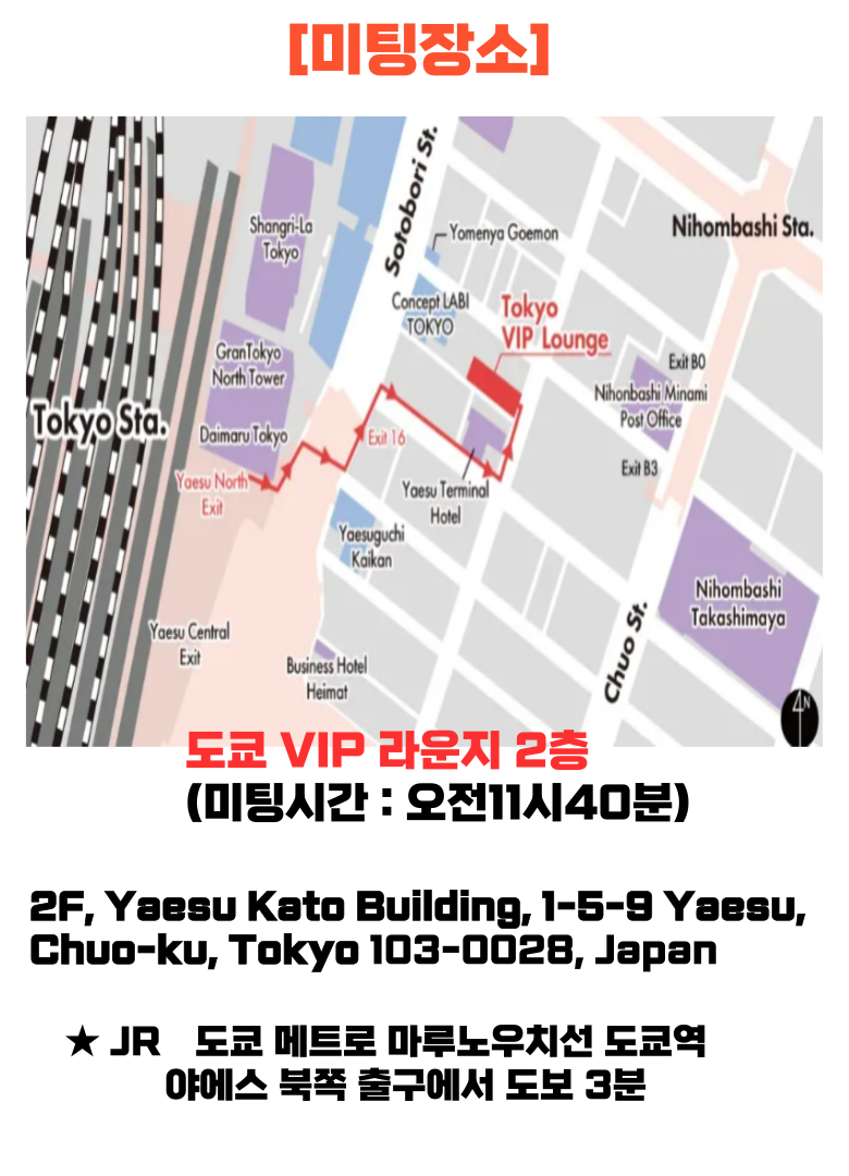 ✅ 버스는 도쿄역, 마루노우치, 아카사카, 메이지 진구 가이엔, 롯폰기, 도쿄 타워, 긴자 등을 투어 합니다.