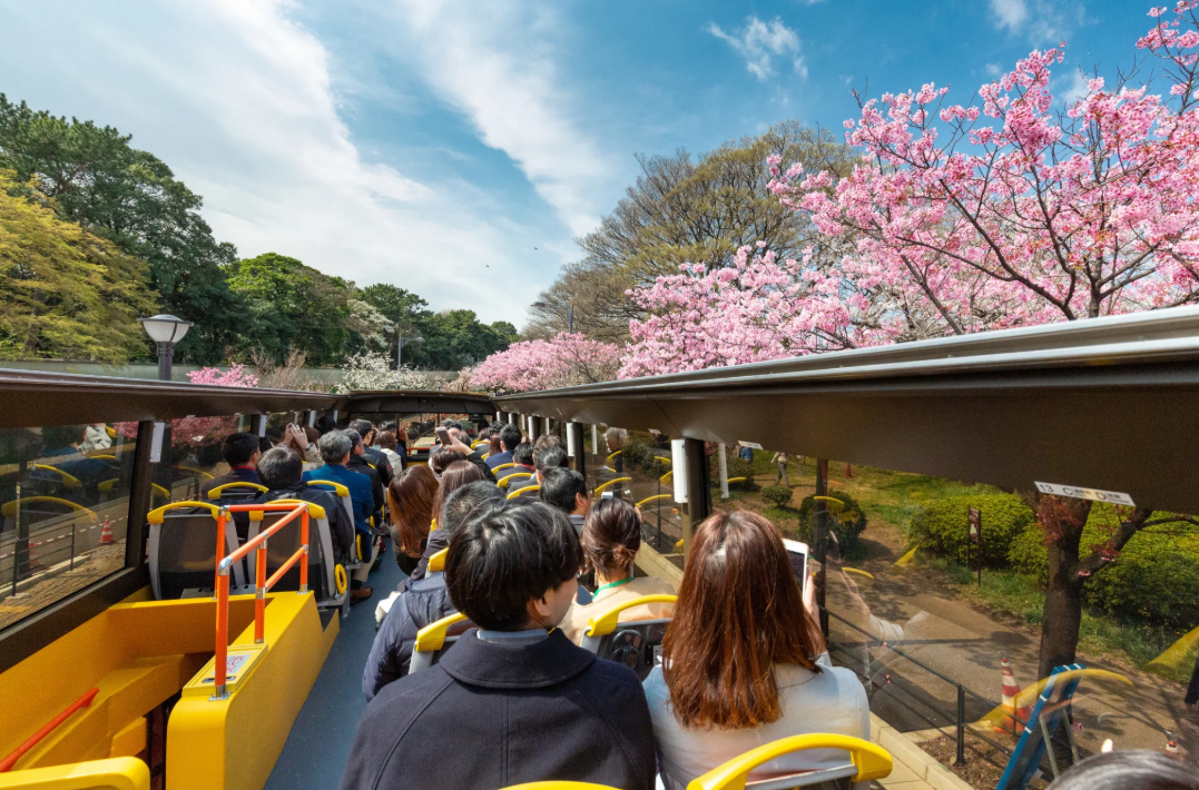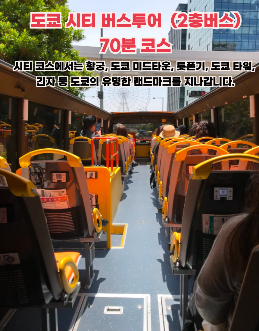📌 도쿄 대도시의 멋진 파노라마 전망을 제공하는 오픈탑 버스를 타고 도쿄를 70분간 달려보세요 !