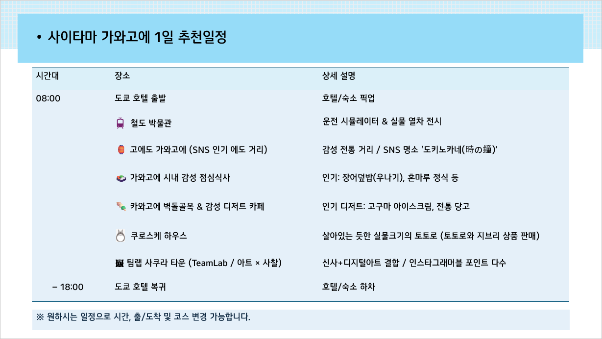 📌 단독차량으로 일본여행의 처음부터 끝까지 완벽한 프라이빗 여행을 즐겨보세요 !