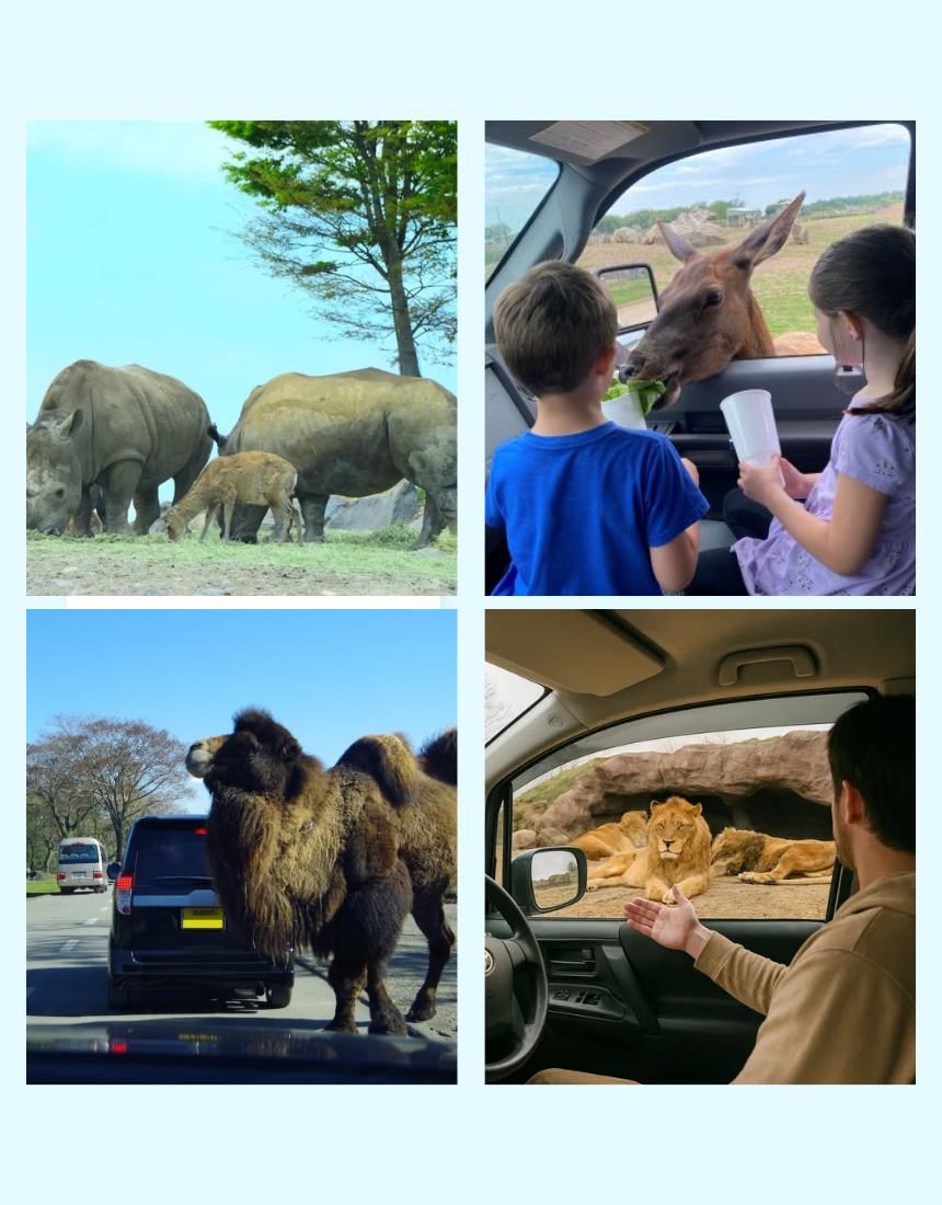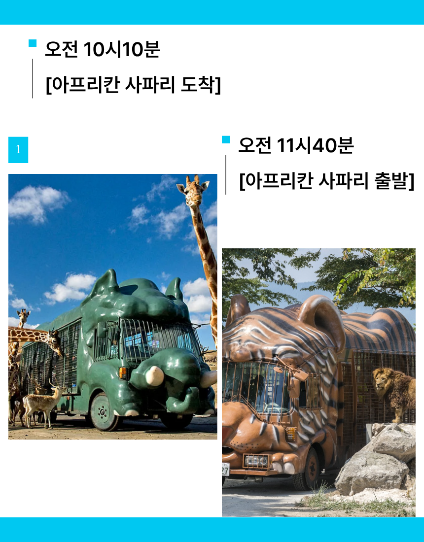 애완동물 및 기타 동물은 사파리존과 체험존 출입 할 수 없습니다.